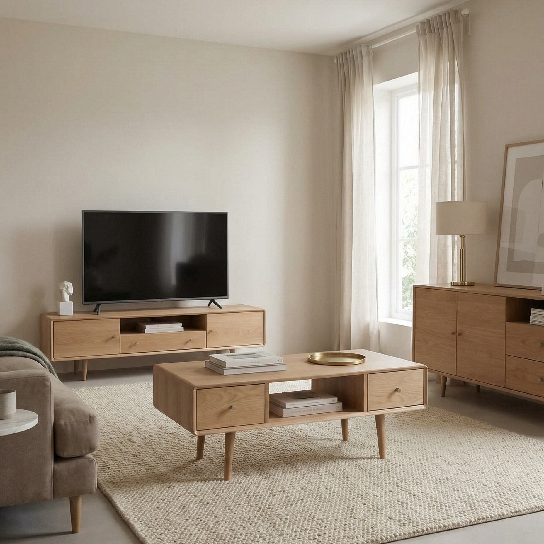 The Rowan furniture range combines warm oak finishes, soft curves, and practical design to bring timeless character into modern homes. From dining tables and sideboards to desks, bookcases, wardrobes, and media units, Rowan offers versatile furniture pieces designed to work beautifully across living, dining, bedroom, and home office spaces.