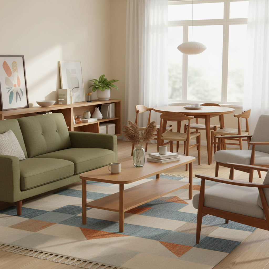 Mid-century design celebrates clean lines, organic shapes, and effortless sophistication. Each piece combines beauty and function — smooth wood finishes, gentle curves, and vibrant accents that bring warmth and personality to any room. This timeless style creates interiors that feel fresh, balanced, and inviting, blending classic craftsmanship with modern living.