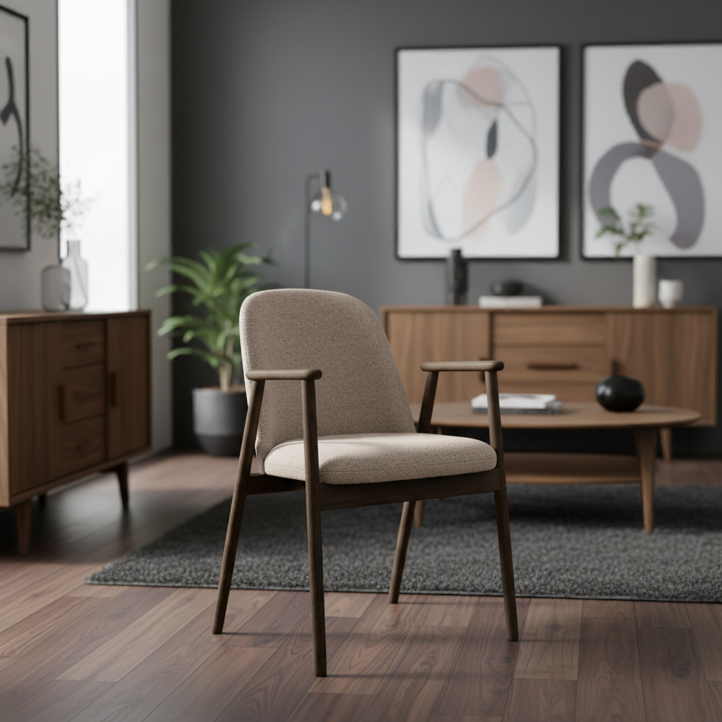 Elm Dining Chairs With Armrest in Beige Fabric Set of 2