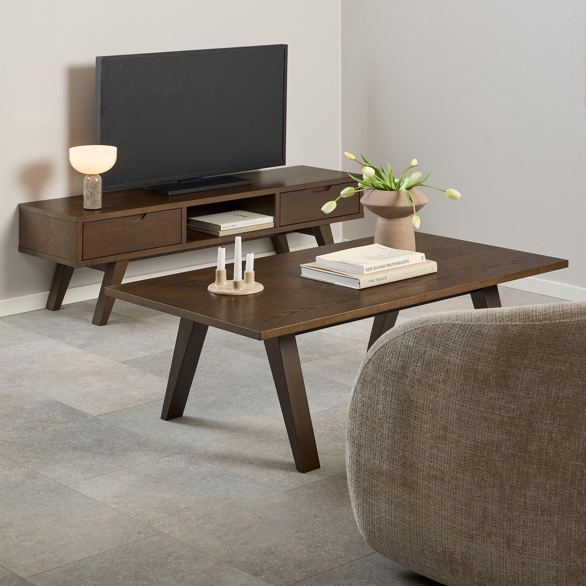 Modern rectangular coffee table with sleek Scandinavian design, smoked oak veneer, and contemporary profile. Perfectly blends into any interior style.