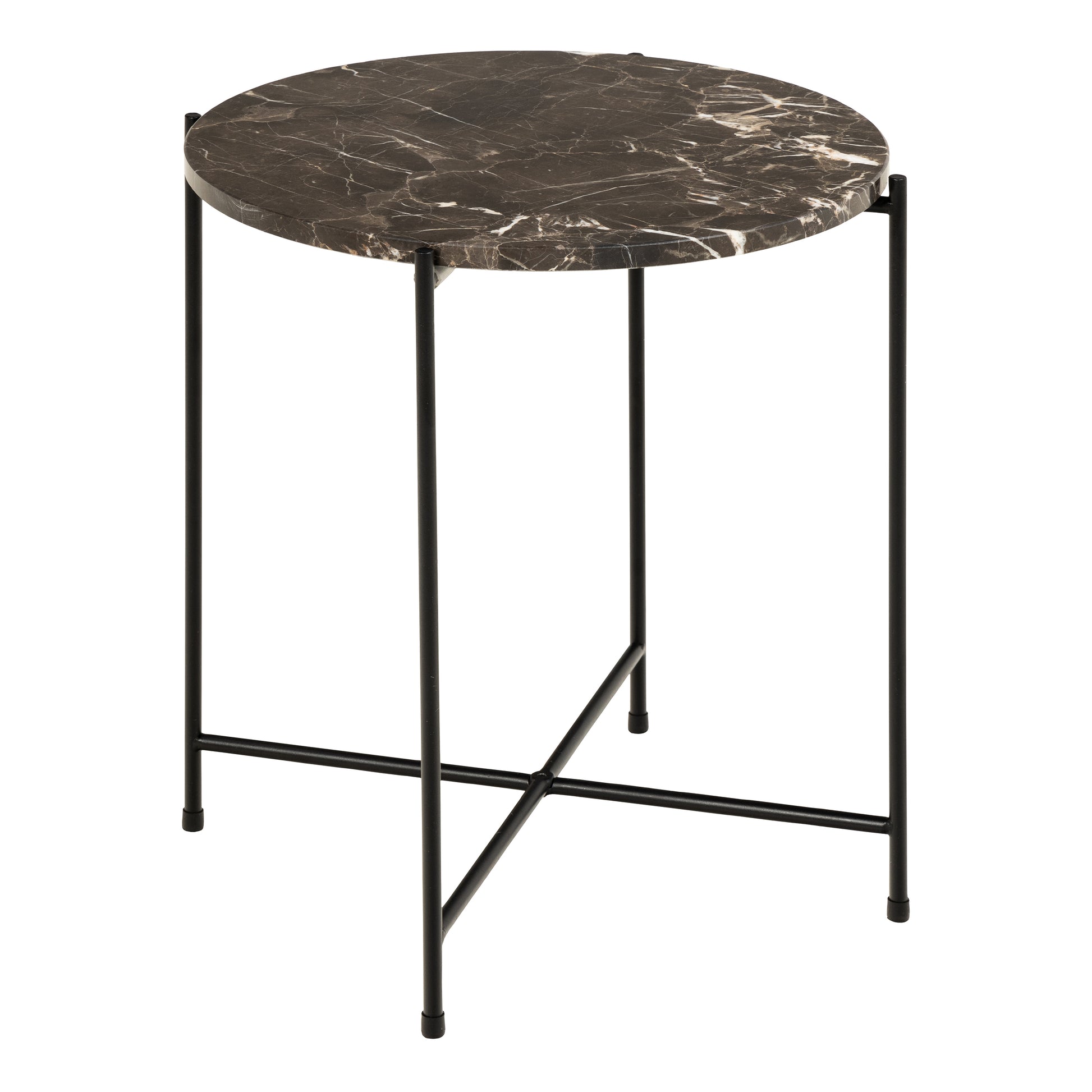 With a top crafted from brown Emperador polished marble and a base in matt black rough powder coated steel, this side tale exudes sophistication. It's a stylish addition to any living space?a perfect blend of elegance and modern design.
