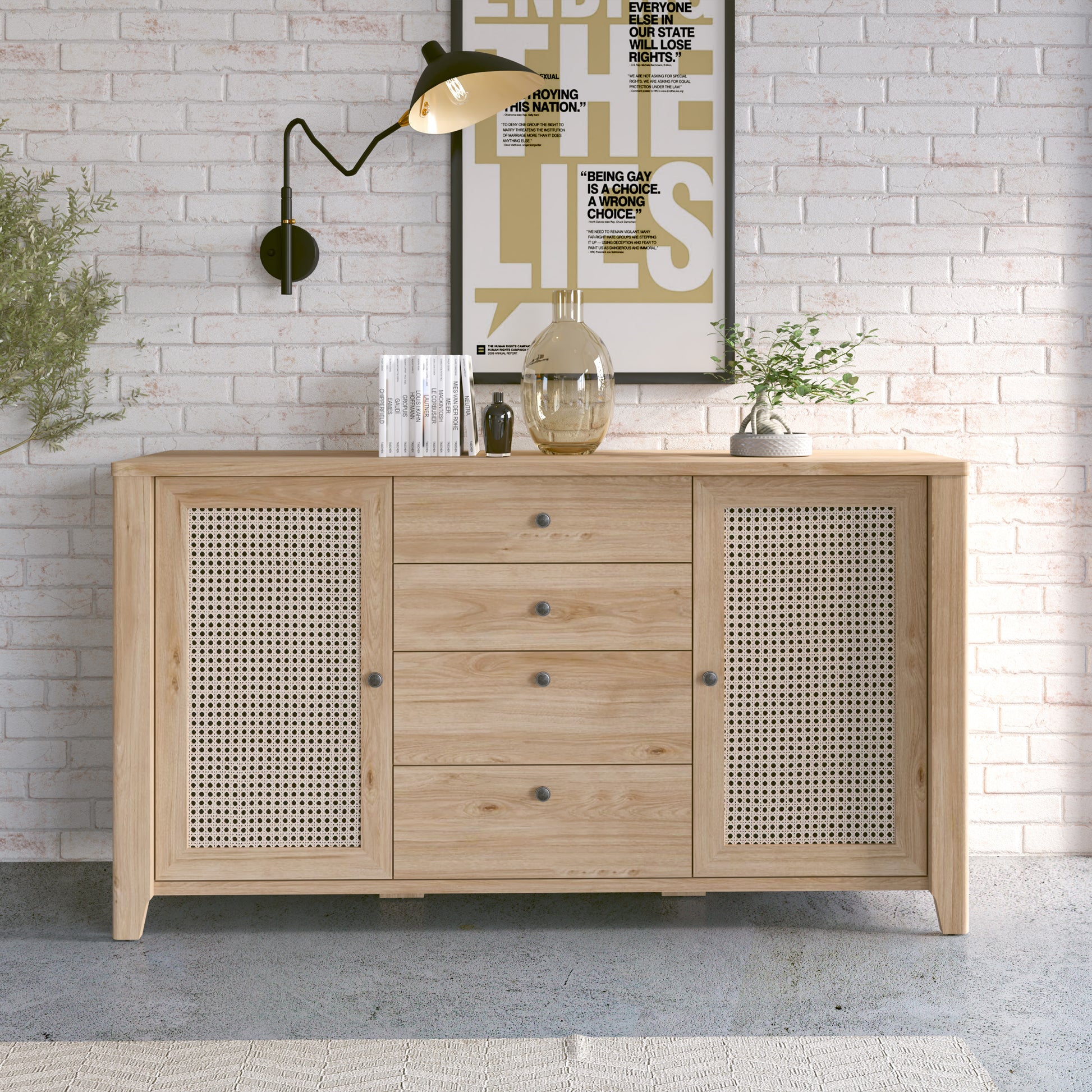 Cestino 2 Door 4 Drawer Sideboard in Jackson Hickory Oak and Rattan Effect