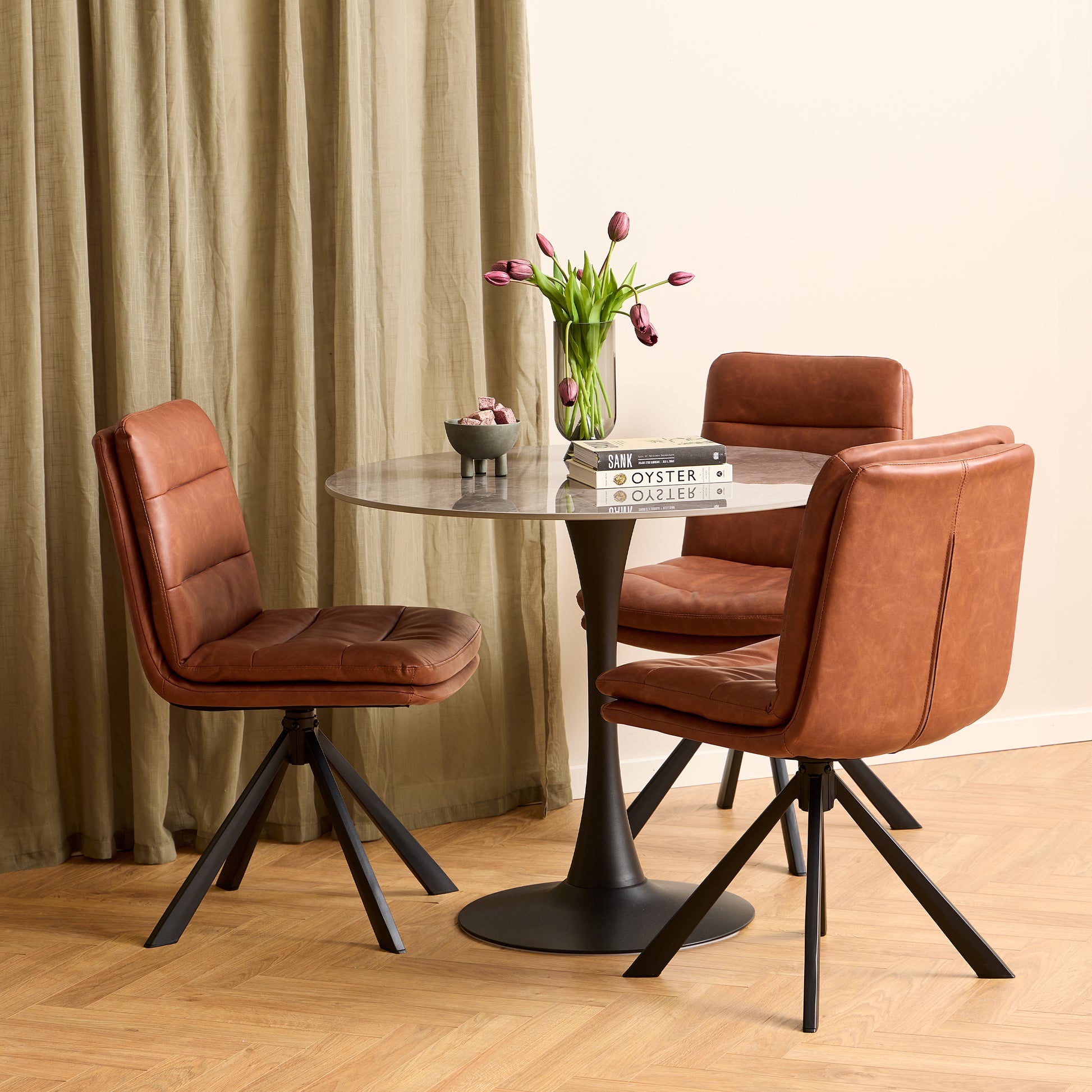 - Choose the Dean Brandy PU Swivel Dining Chair and enjoy the perfect balance of style and function.