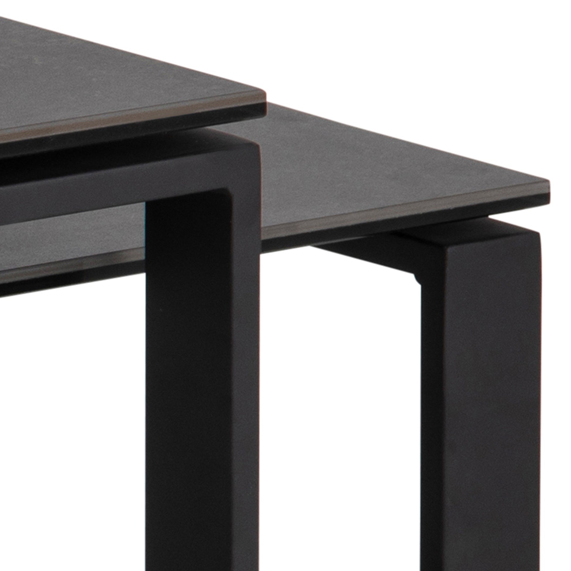 The Element coffee table set blends industrial styling with luxurious materials, featuring a rugged black ceramic top and sleek black steel sledge base. Ideal for creating a modern focal point, the two-piece design offers layout flexibility and visual impact.