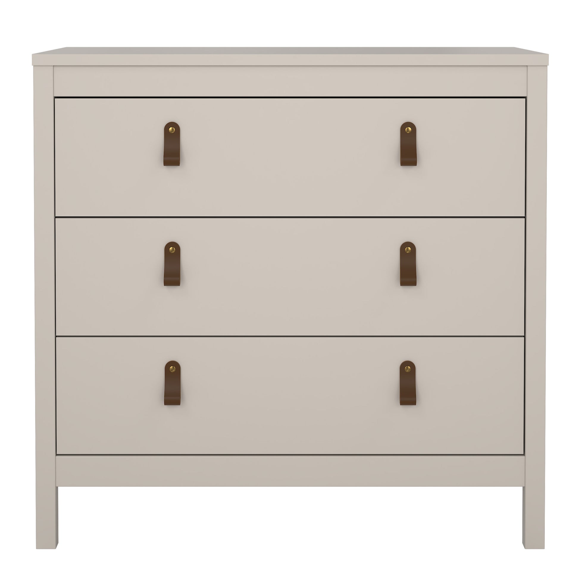Harrow 3 Drawers Chest in Cashmere with Leather Tab Handles