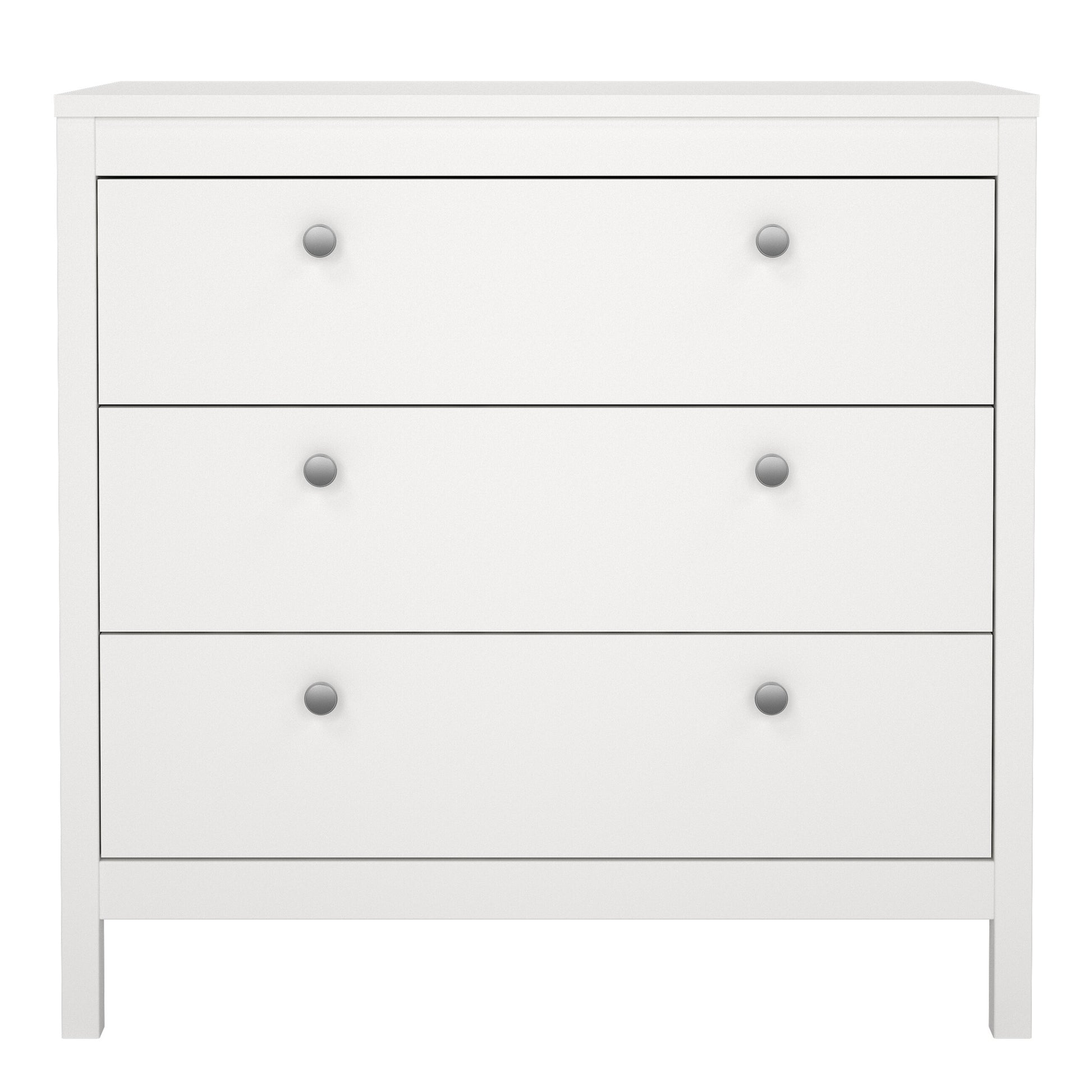 The Harrow 3 Drawers Chest in White offers elegant storage with a smooth, modern finish. Its soft-close drawers provide quiet, easy organization, while the top surface is ideal for displaying decor. Choose between leather handles for a luxurious look or silver knobs for a timeless style, making it a versatile addition to any room.