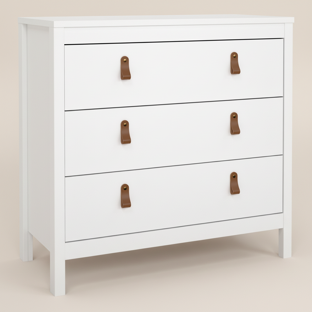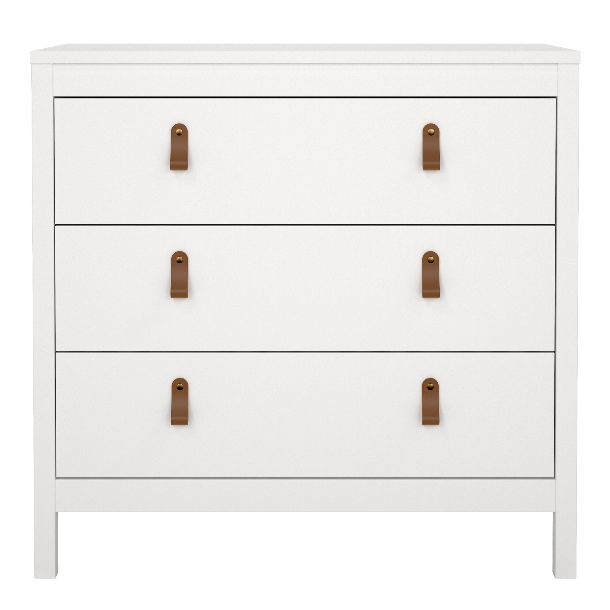 Harrow 3 Drawers Chest in White with Leather Tab Handles