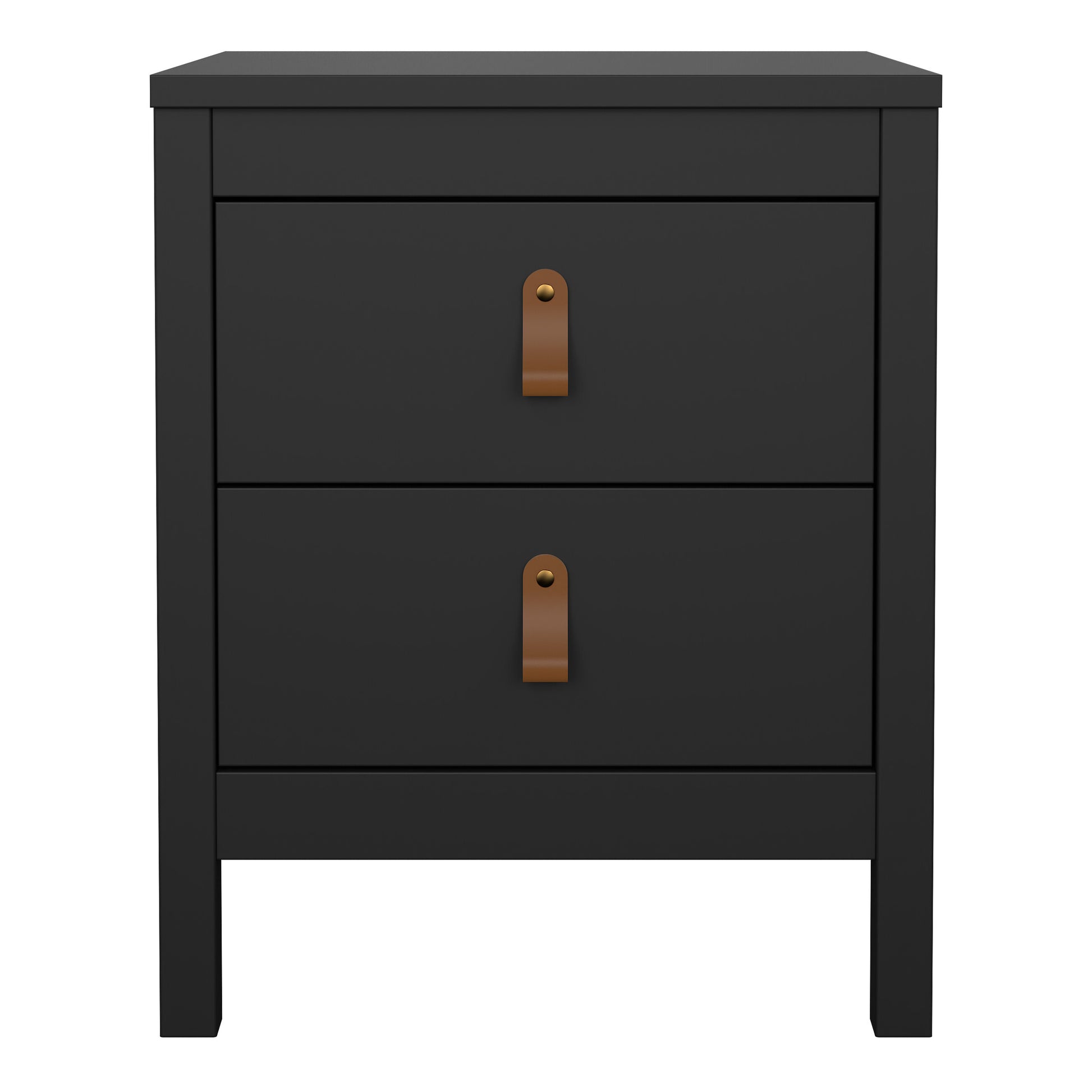 Upgrade your bedroom storage with the Harrow 2-Drawer Bedside Table in Matt Black. Designed for both style and practicality, this nightstand combines a sleek matt finish with natural leather tab handles, creating the perfect balance of modern design and warm detailing.