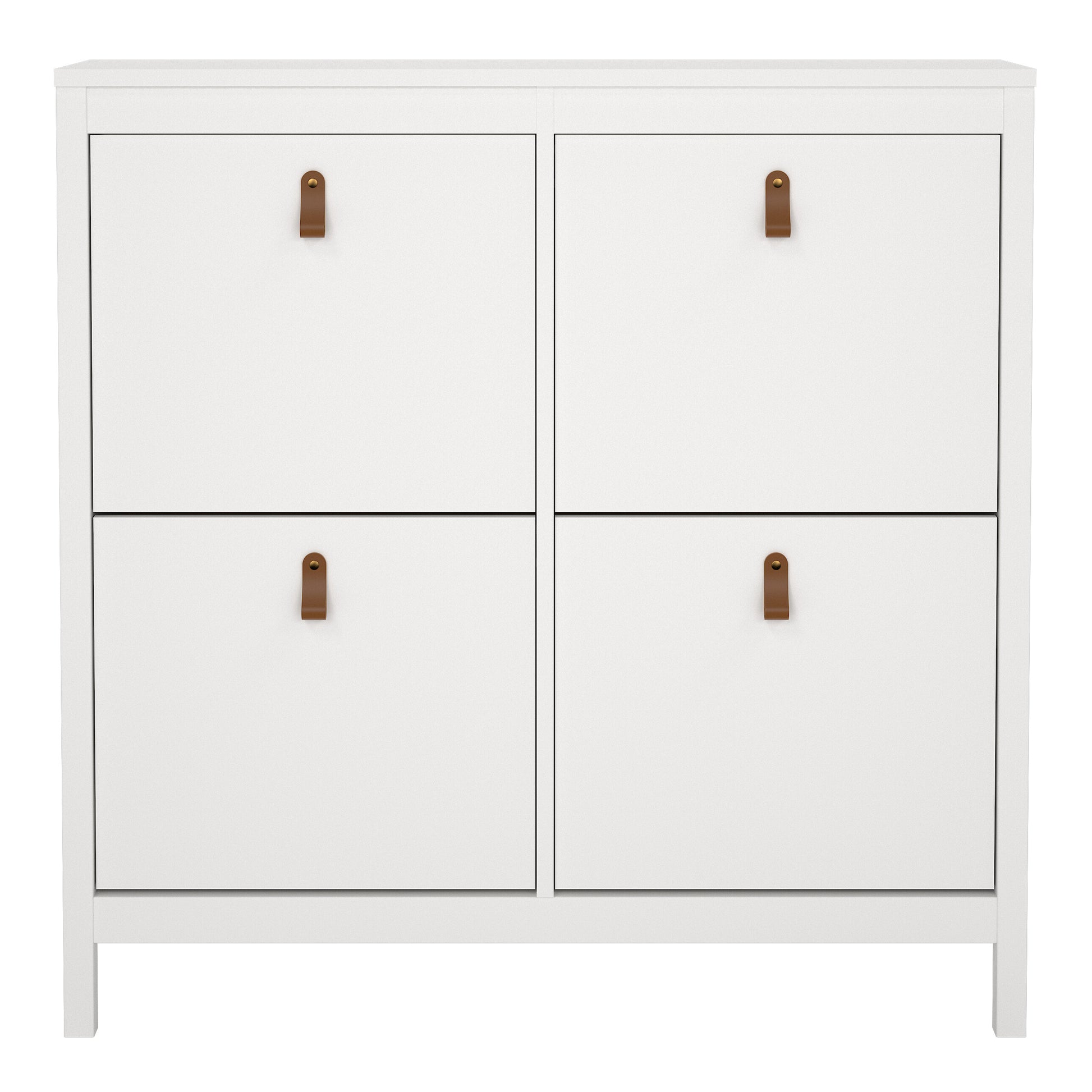 Harrow Shoe Cabinet 4 Flip Down Doors in White & Leather Tab Handles