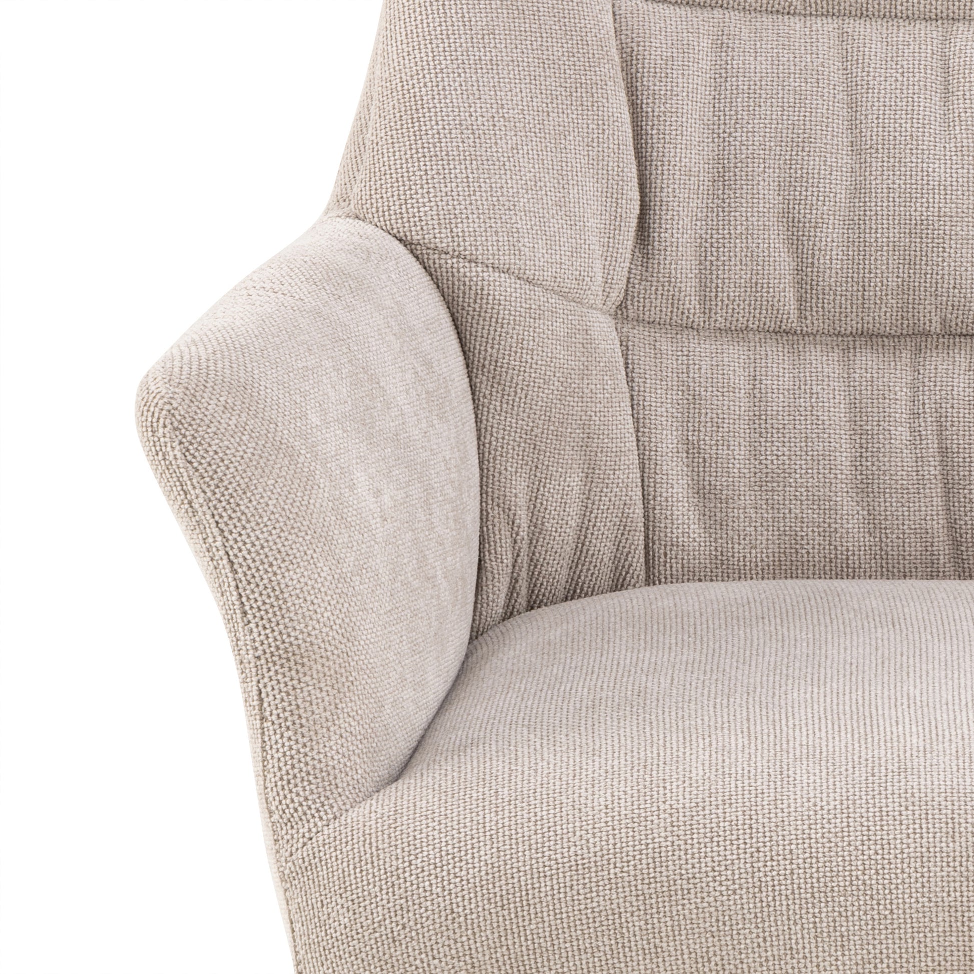This stylish table is paired with four Alonso swivel dining chairs, upholstered in soft cream chenille fabric with supportive armrests and a 360° swivel base for maximum comfort and flexibility. Compact yet inviting, this set fits perfectly into modern kitchens and open-plan dining areas.