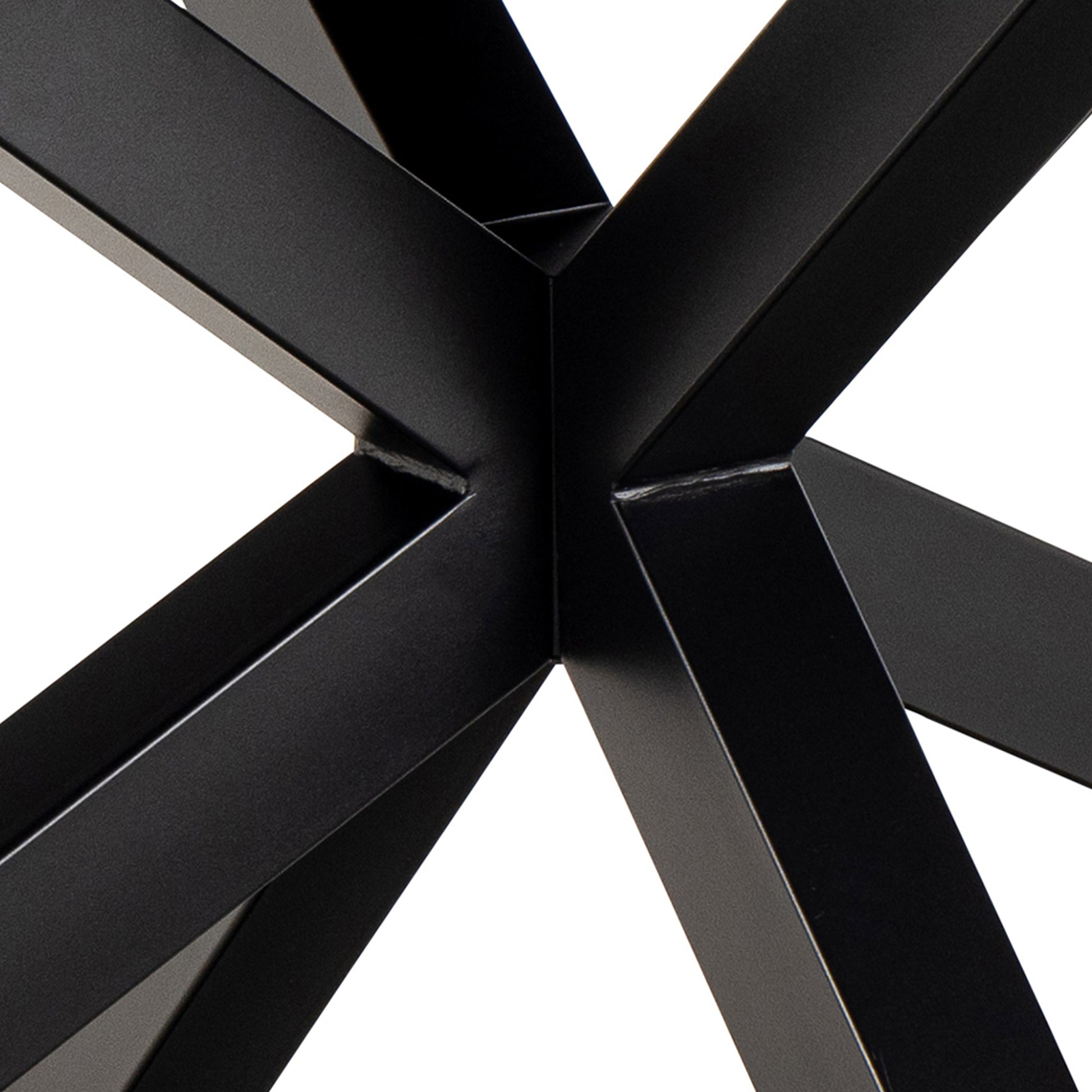 This Meridian Extendable Table in Ceramic White combines beauty and practicality. Its marble-look surface is scratch and heat-resistant, while the hidden extension leaf and sleek black cross base make it an elegant solution for dining spaces that require both form and function.