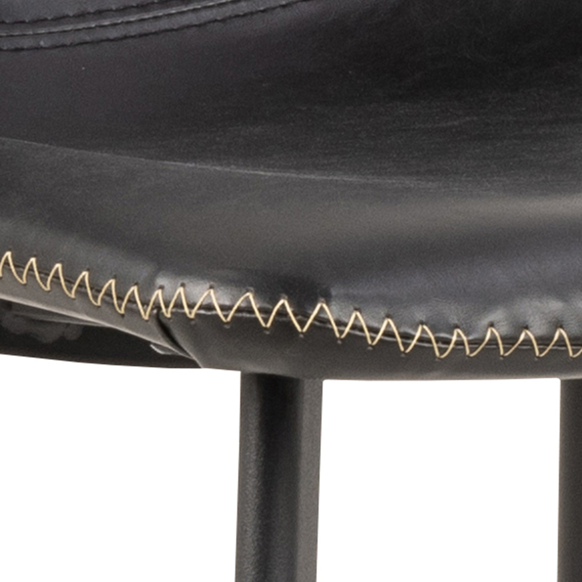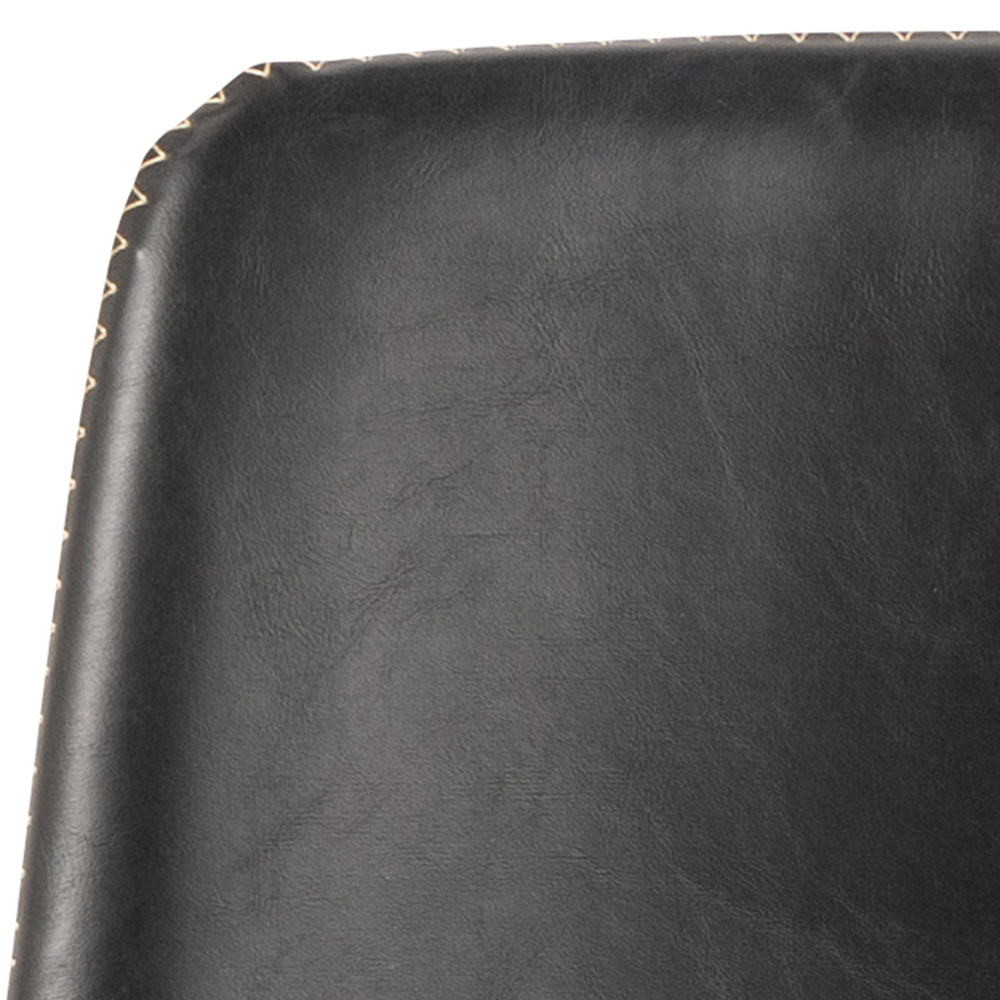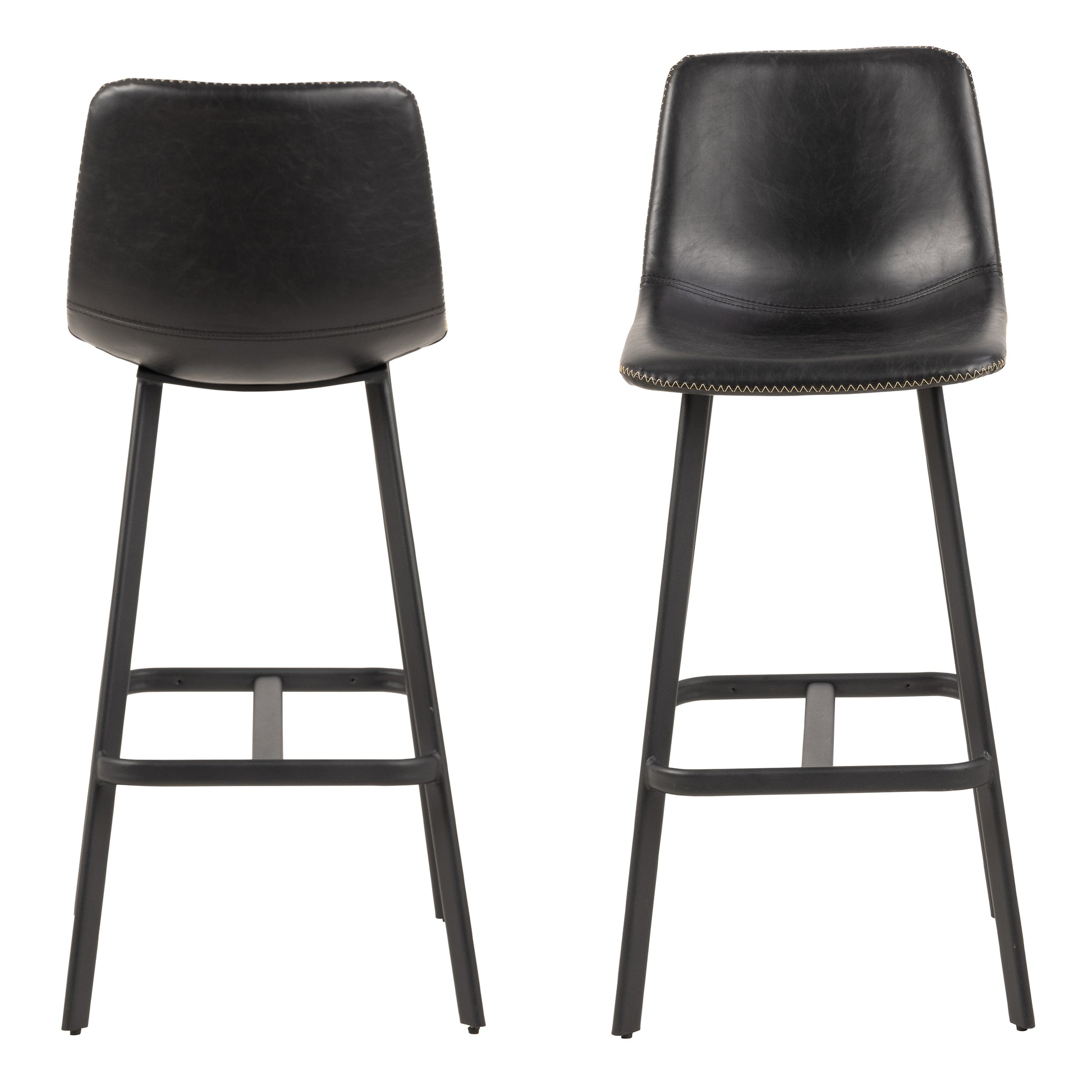 Oregon Black Bar Chairs – Set of 2. Upholstered in black PU leather with cream contrast stitching, these chairs combine classic and contemporary design. Matte black steel base with integrated footrest ensures stability. Ideal for kitchen islands, breakfast bars, or home bar spaces. Durable, ergonomic, and stylish for everyday use and entertaining.