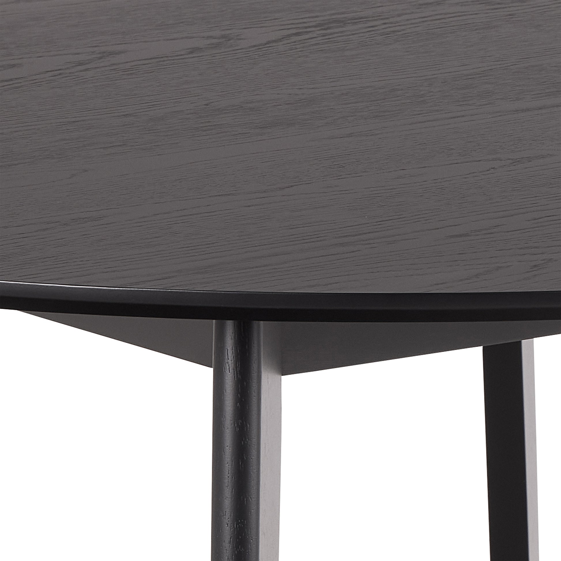 Make a statement with the Orion round dining table in black. Its expansive 120cm oak veneer top offers room for hosting and everyday dining, while the sturdy matte black base delivers classic sophistication. With softened edges and a refined finish, it’s as functional as it is visually impressive.