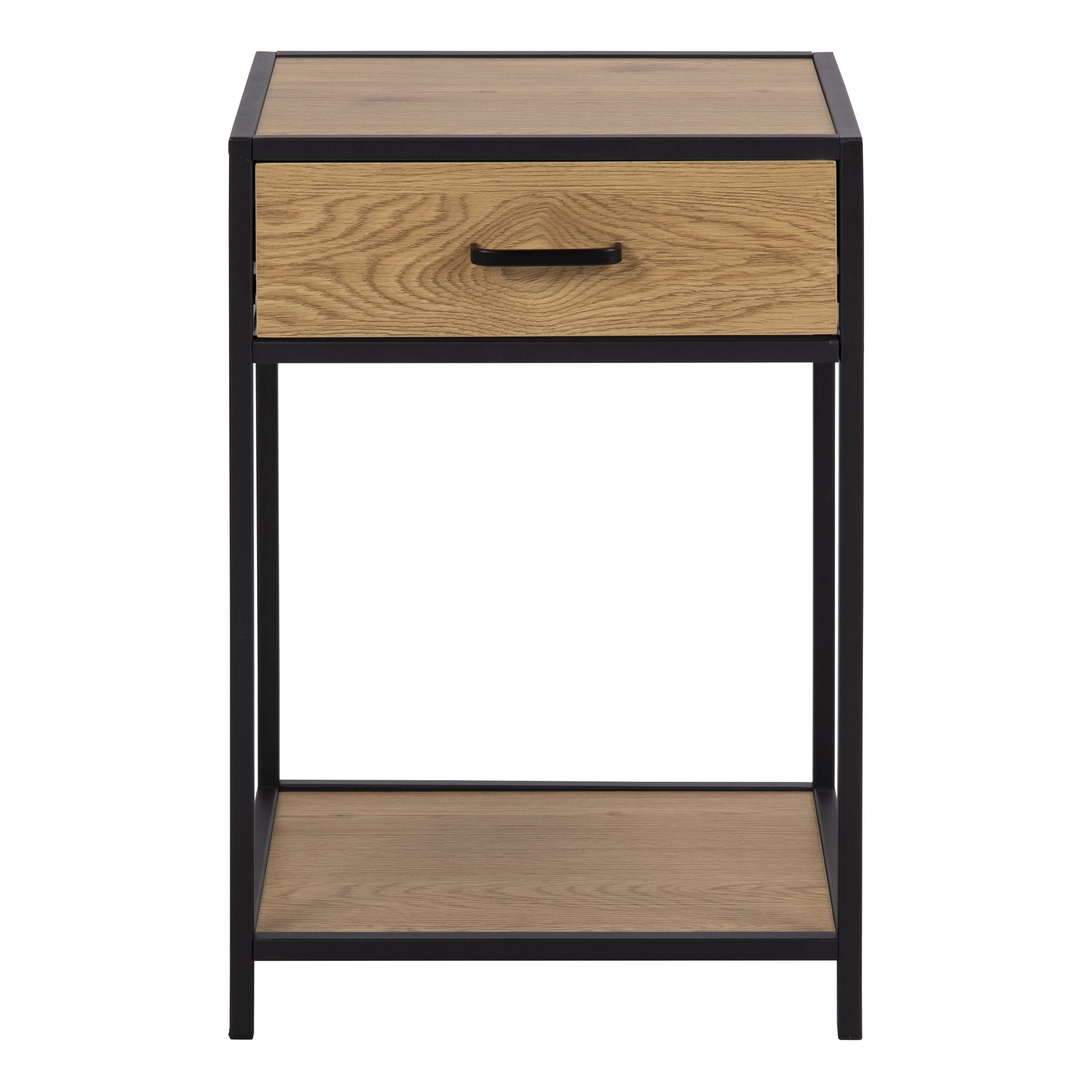 Seaford Bedside Table with 1 Drawer in Black & Oak
