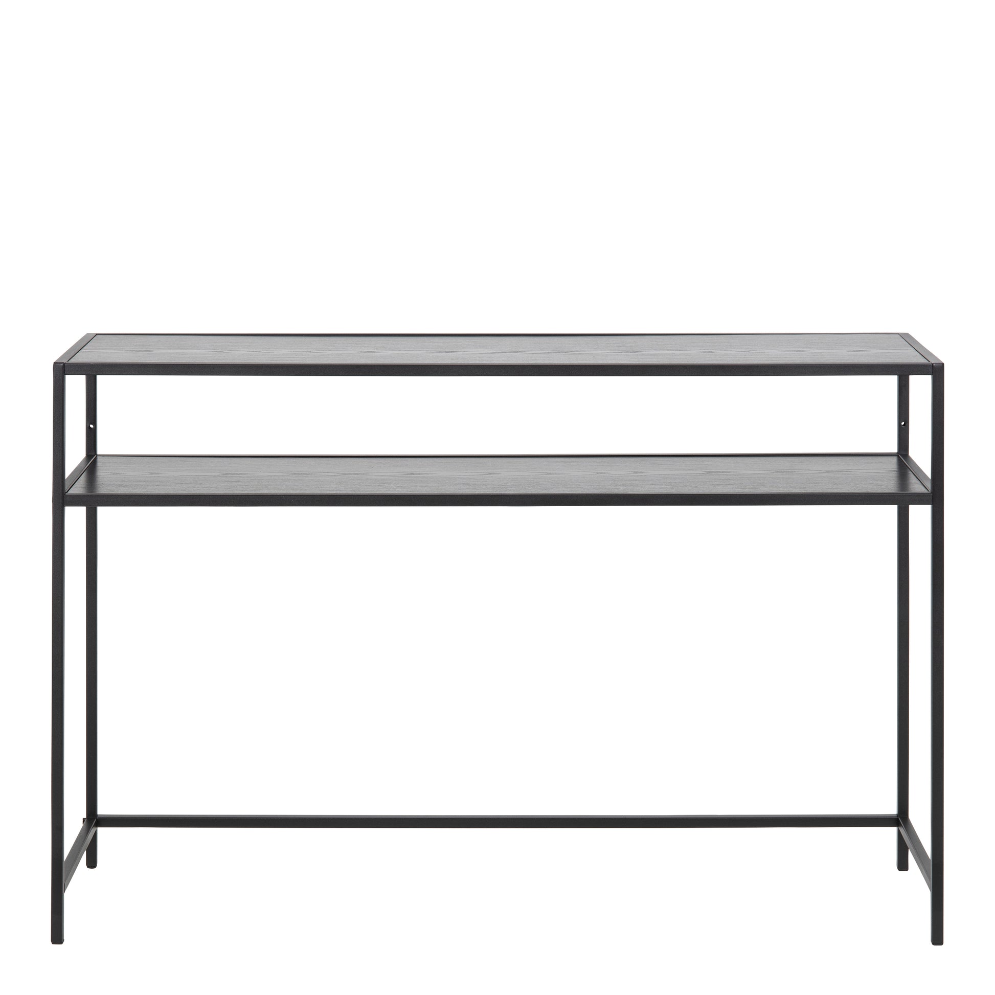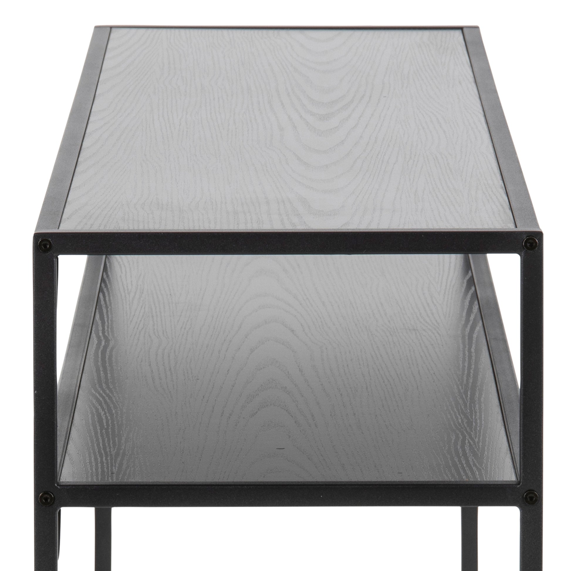 Elevate your home with our chic console table, boasting a sophisticated ash black top and shelf, supported by a robust matt black steel base. Its streamlined design seamlessly integrates into any decor, offering both style and substance.