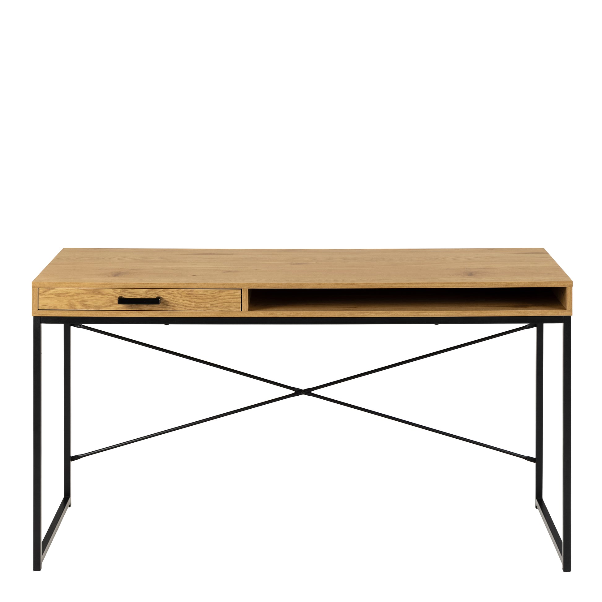 Seaford wide Office Desk with 1 Drawer in Black and Oak