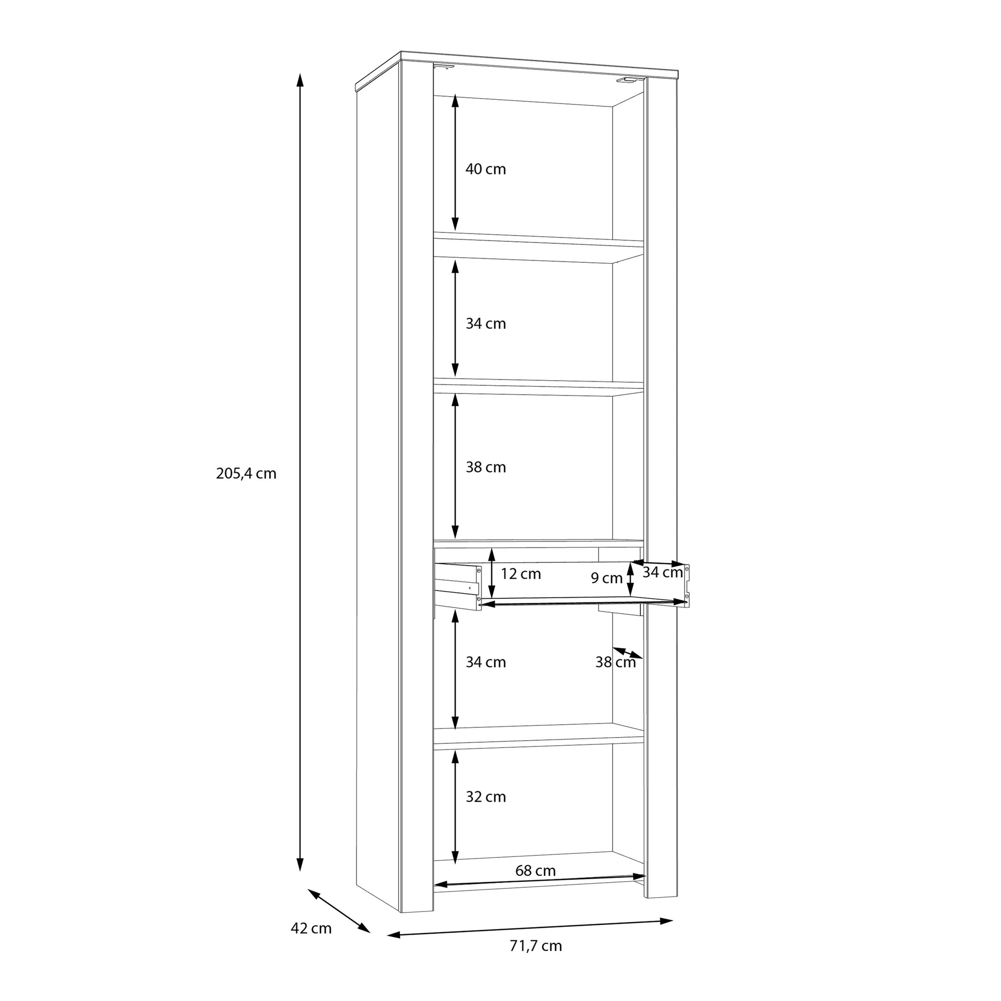 - Dimensions: W 72 x H 205 x D 42 cm